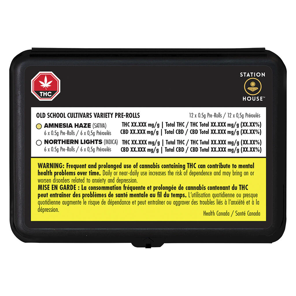 Station House's Old School Variety Pack is for the legacy consumer who's looking for a portable multipack with staple indica and sativa strains. This multipack features Amnesia Haze, a sativa known for its lemon and citrus flavours and Northern Lights, an indica known for its pine and skunk aromas. Always packed with a humidity device for extended freshness.