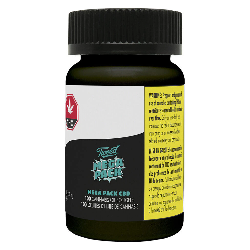 Tweed Mega Pack, featuring 100 softgels with 50mg CBD each.